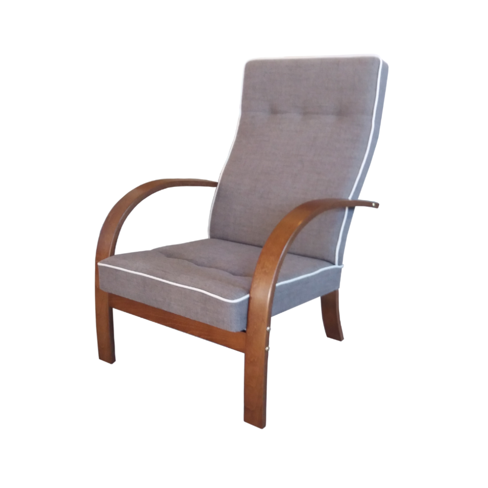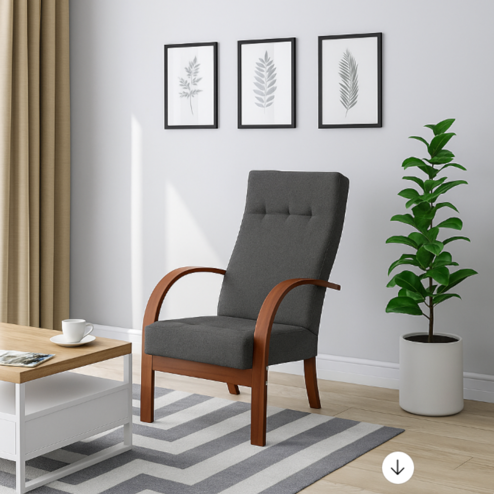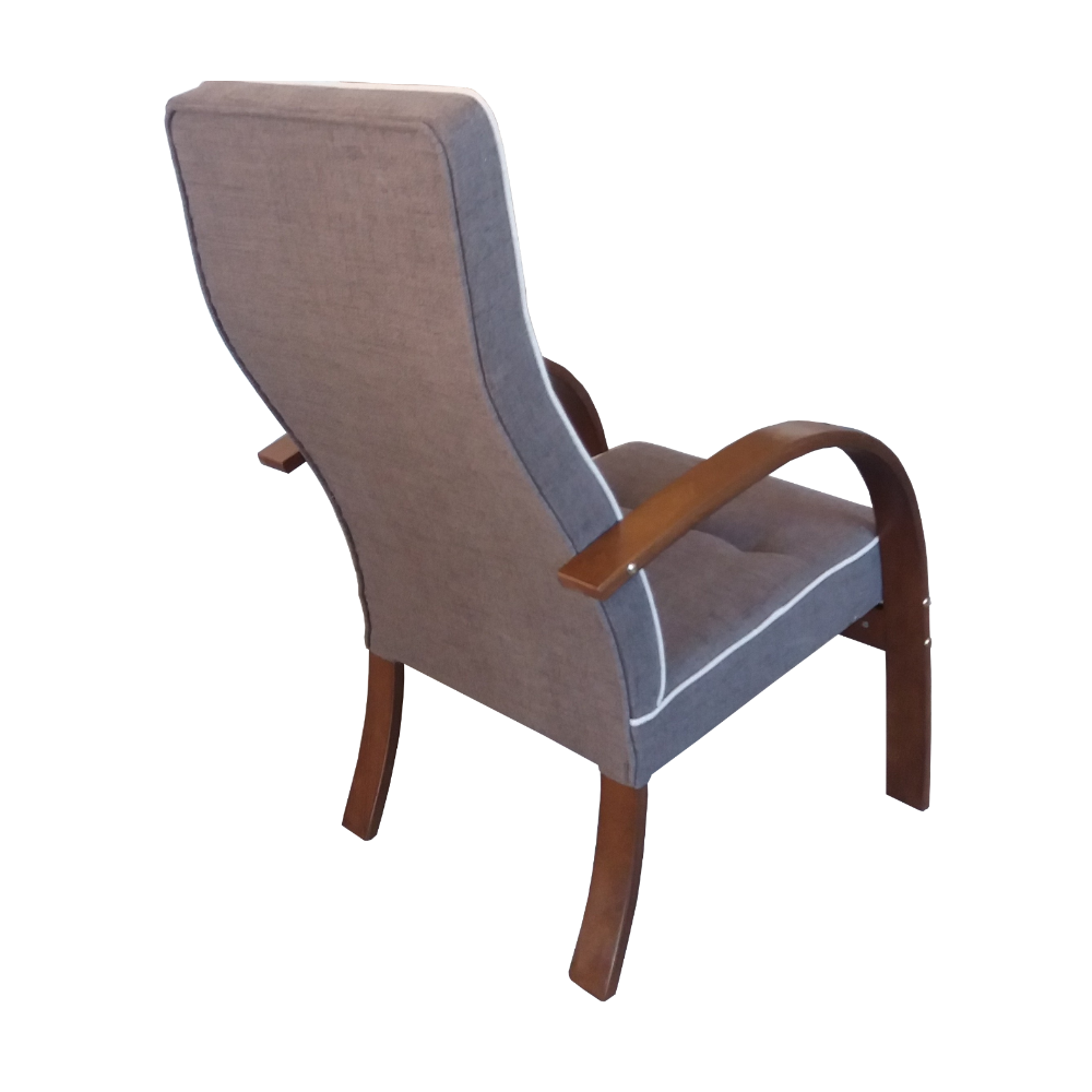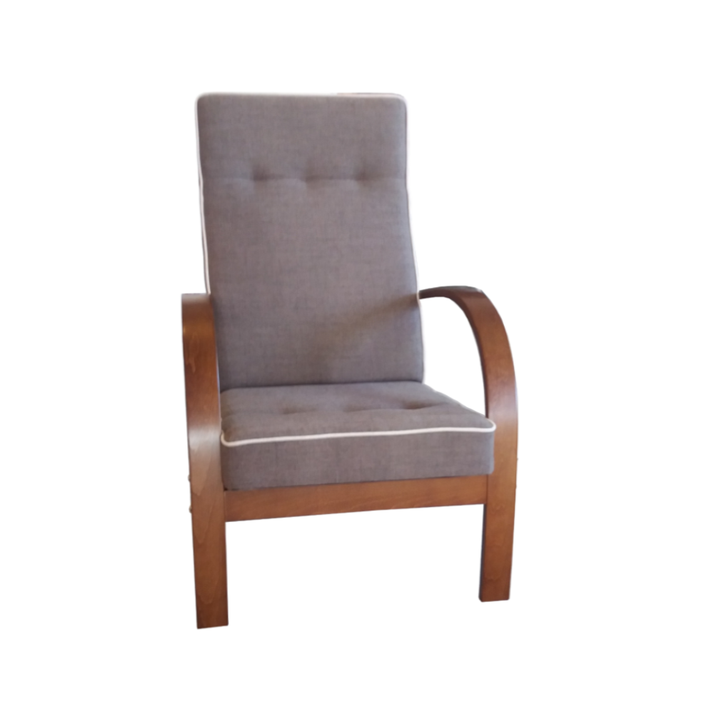 Fotel LUX 2 to elegancki mebel o klasycznej formie i nowoczesnym wykończeniu. Wyróżnia się tapicerką w stonowanym, szarym kolorze z ozdobną lamówką, która dodaje mu charakteru i subtelnej lekkości. Gięte, drewniane podłokietniki w ciepłym odcieniu brązu nadają konstrukcji finezji i stabilności. Wysokie oparcie oraz miękkie siedzisko zapewniają wysoki komfort użytkowania, dzięki czemu fotel idealnie sprawdzi się w salonie, gabinecie czy pokoju dziennym. To doskonałe połączenie wygody, stylu i solidnego wykonania.