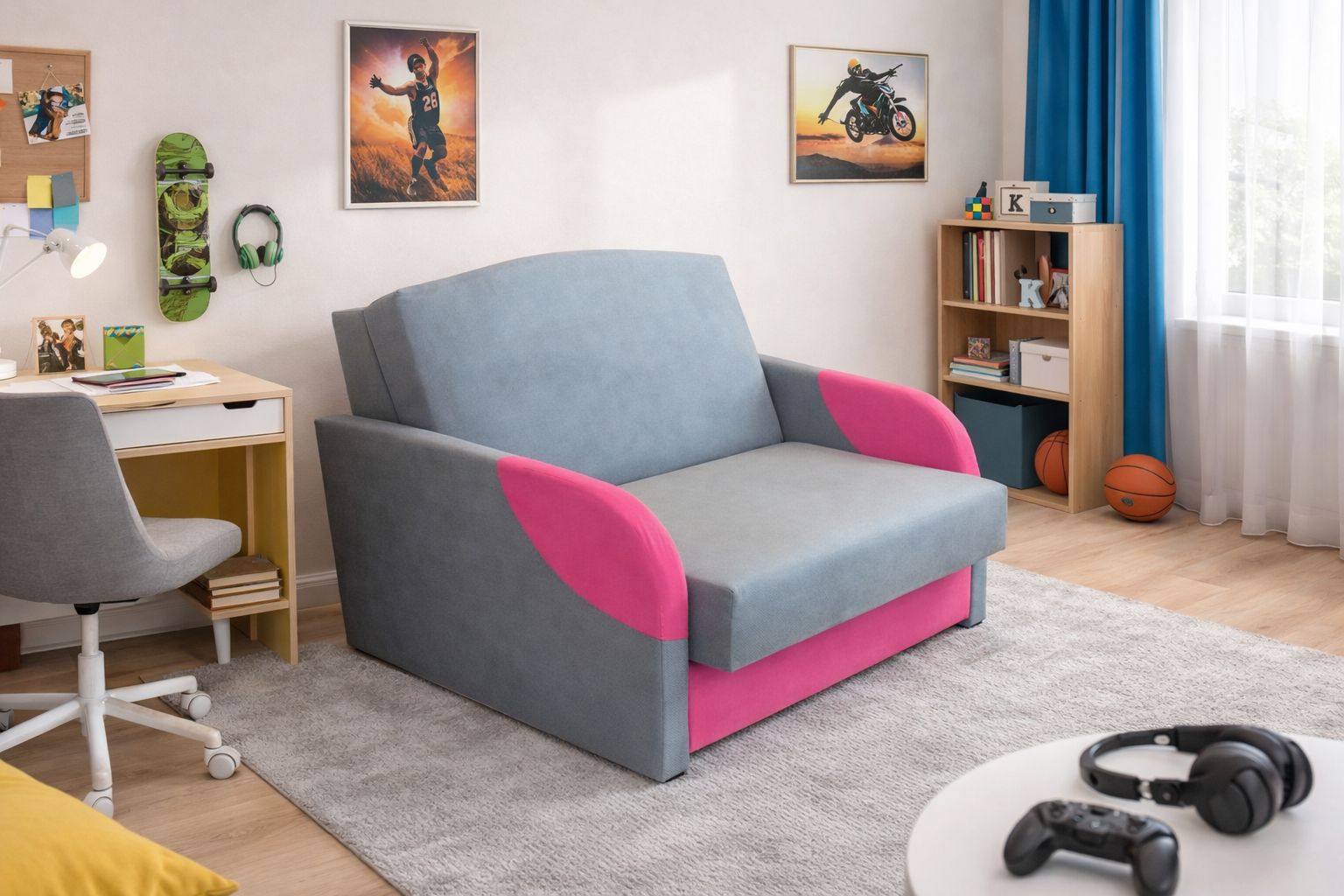 Fotel rozkładany DORIS to kompaktowe rozwiązanie typu „amerykanka”, idealne do małych wnętrz. Dzięki funkcji spania szybko zamienia się w wygodne miejsce do wypoczynku, a wbudowany pojemnik na pościel zapewnia dodatkową przestrzeń do przechowywania. DORIS łączy w sobie komfort, funkcjonalność i elegancki wygląd – doskonały wybór do salonu, pokoju młodzieżowego lub gościnnego.
