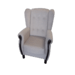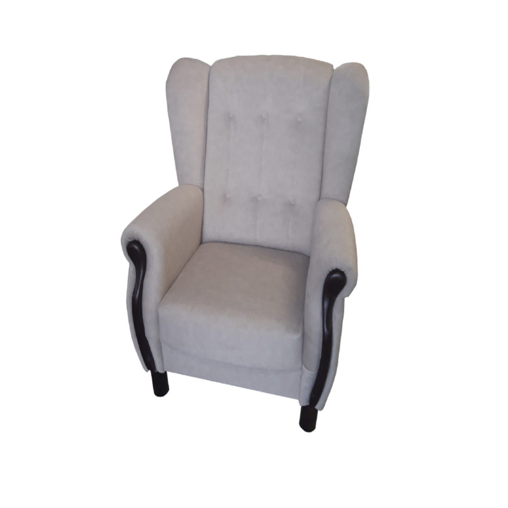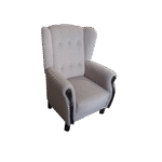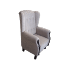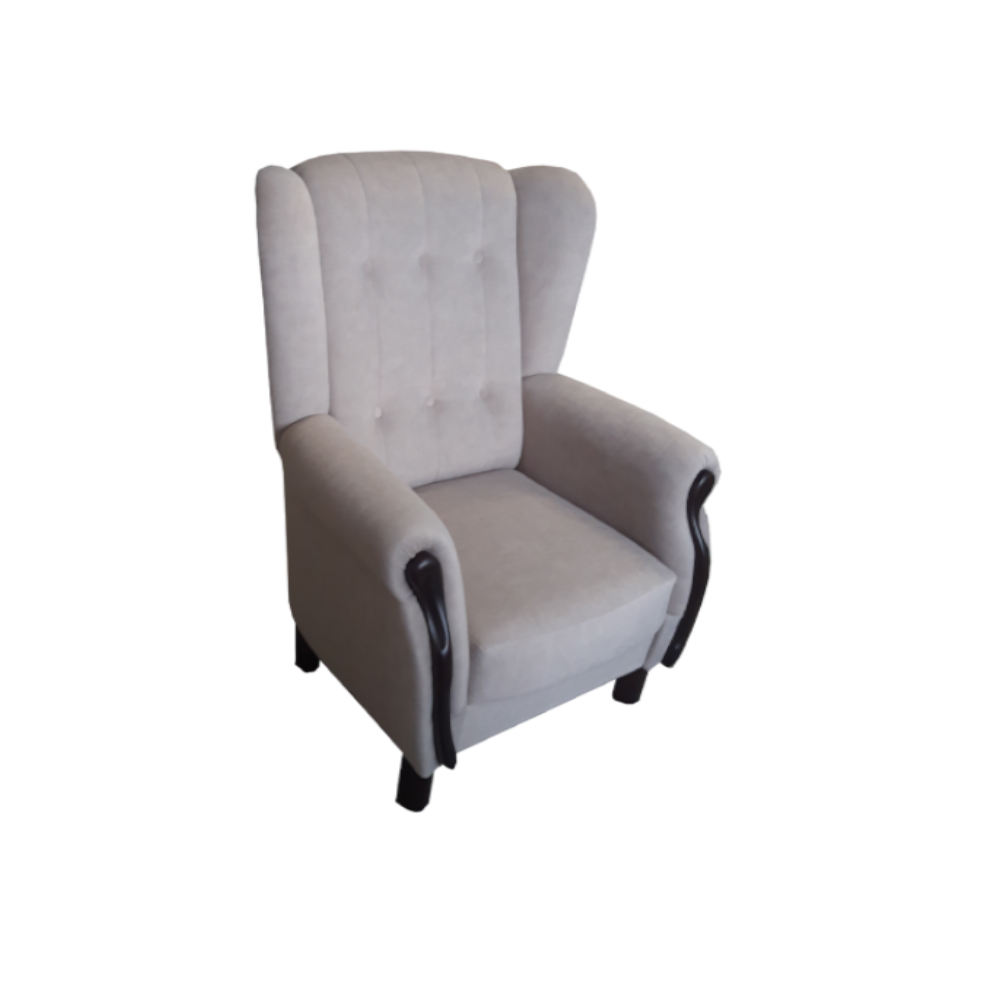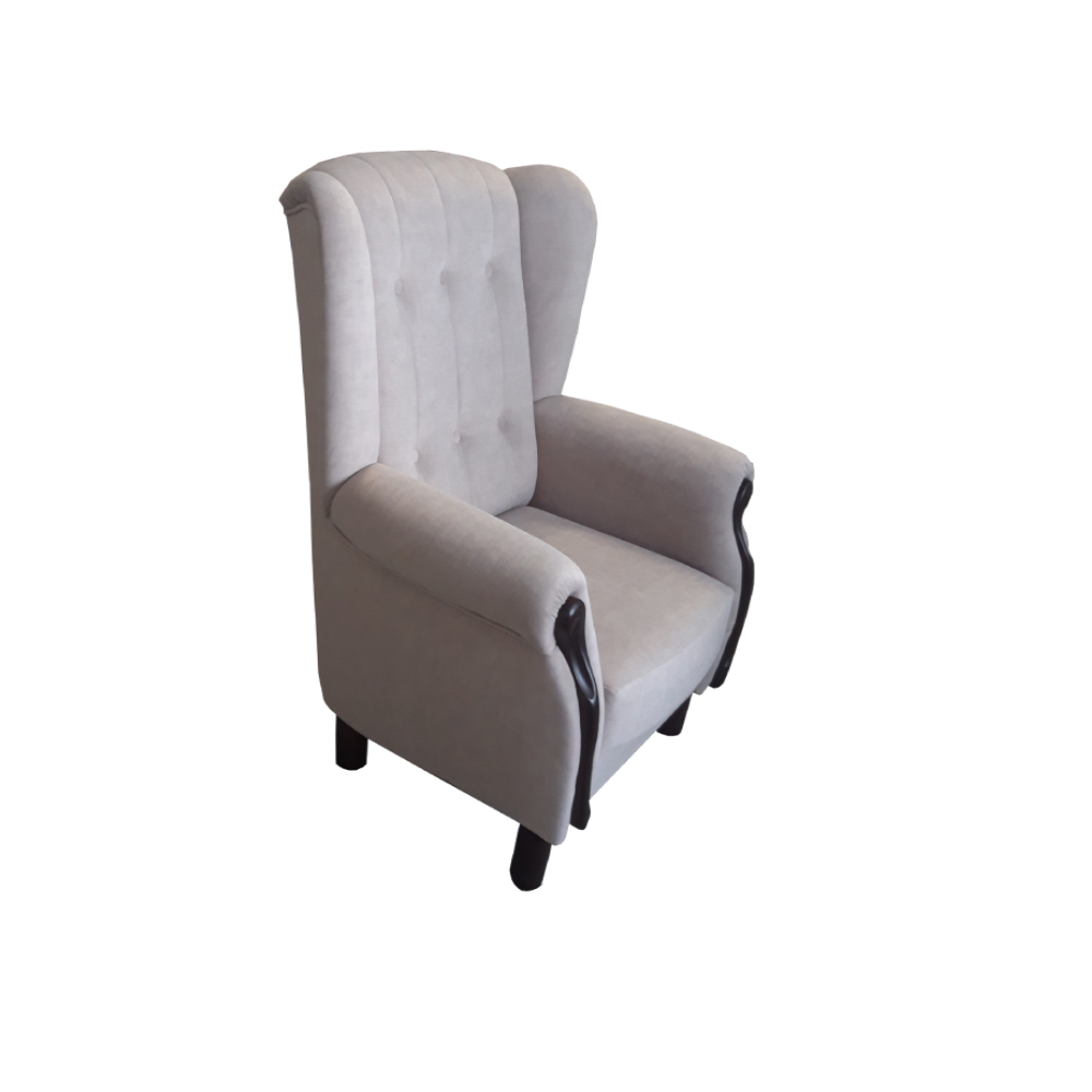 Ten fotel to klasyczny „uszak”, który łączy elegancję z wygodą. Jego wysokie oparcie z charakterystycznymi bocznymi skrzydłami zapewnia komfort i doskonałe podparcie dla pleców. Jasna tapicerka nadaje mu lekkości i sprawia, że świetnie prezentuje się w każdym wnętrzu. Drewniane, stylizowane elementy dodają mu uroku i podkreślają tradycyjny charakter mebla. To idealny fotel do salonu lub biblioteki, w którym można zrelaksować się przy książce lub filiżance kawy.
