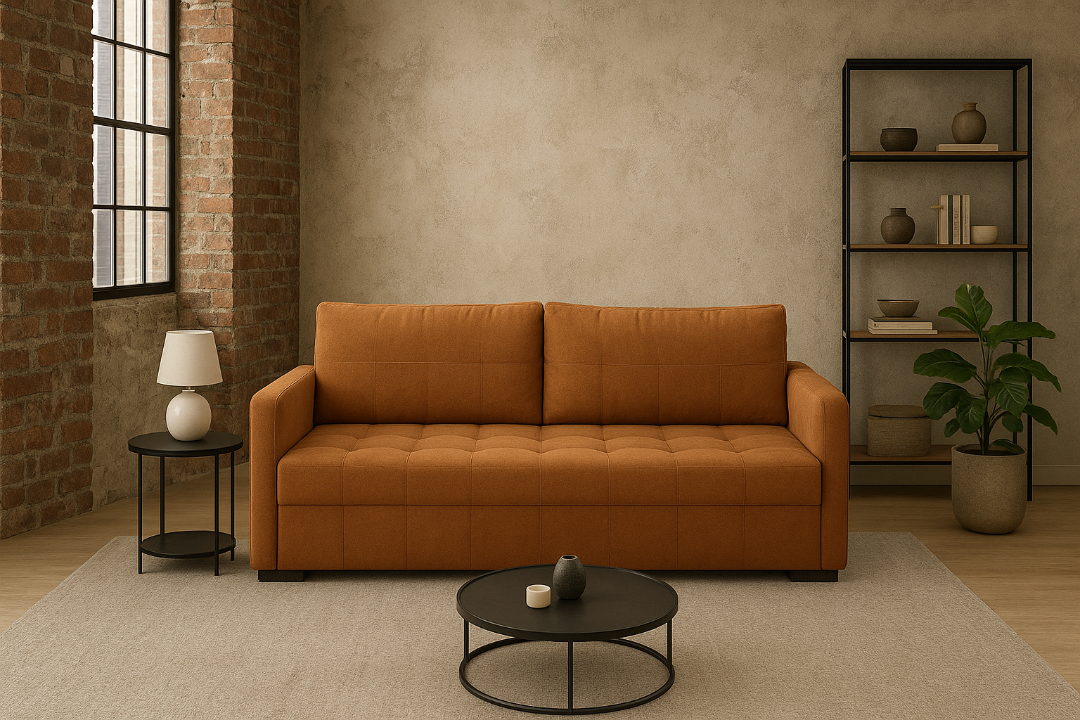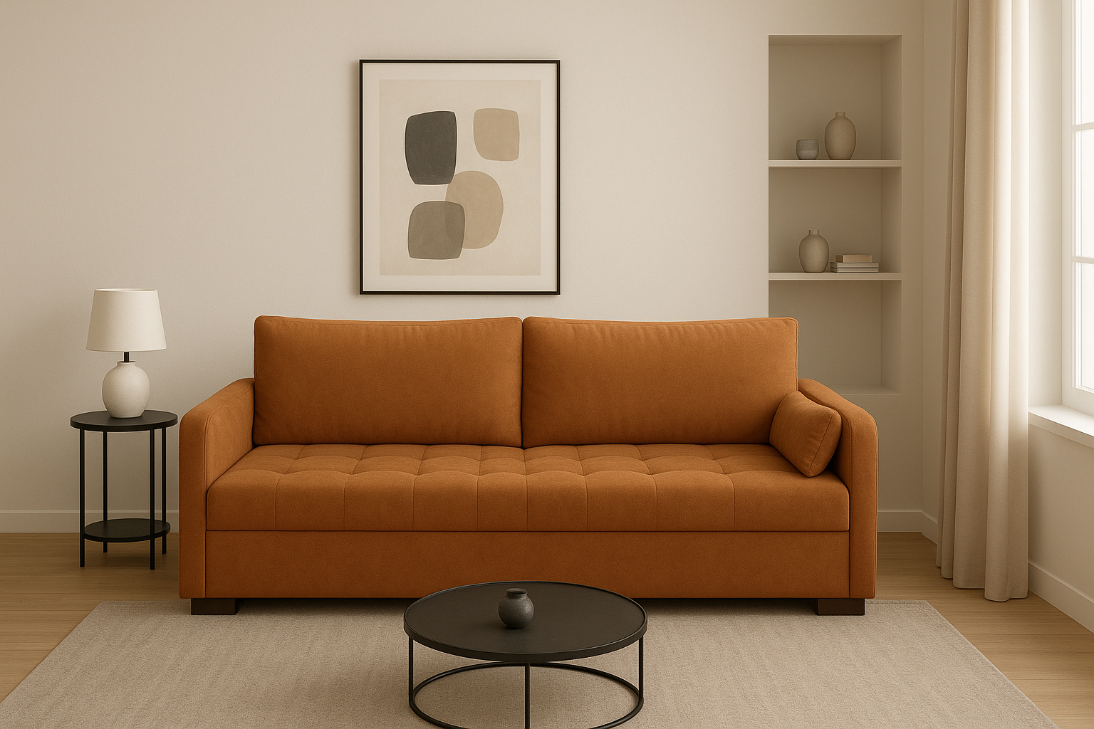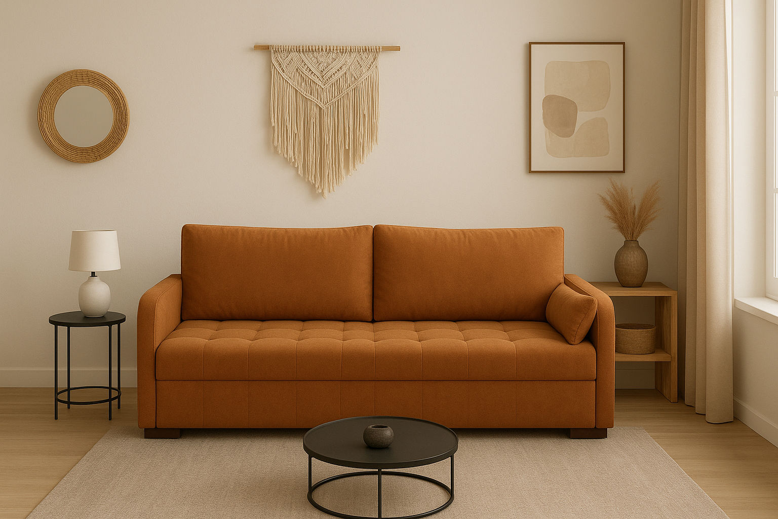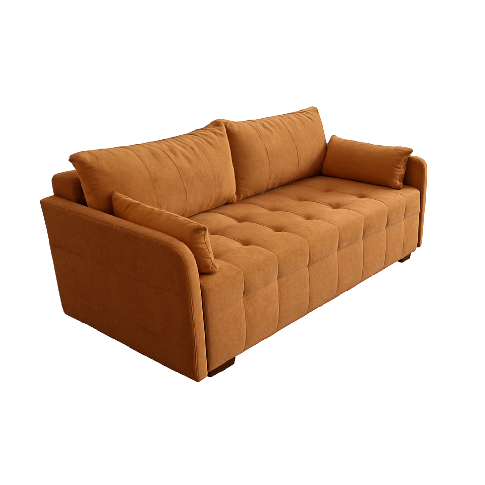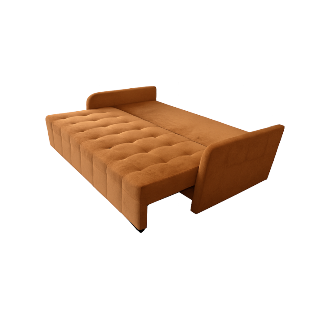 Sofa PIKO doskonale wpasuje się w każde wnętrze. Charakteryzuje się prostą, minimalistyczną bryłą z wąskimi podłokietnikami. Obicie wykonane jest z wysokiej jakości miękkiej tkaniny w odcieniach miodu , zapewniającej wygodę użytkowania. Siedzisko składa się z dwóch segmentów, a oparcie wyposażone jest w dwie duże, luźne poduszki, które gwarantują doskonałe podparcie pleców. Sofa sprawdzi się zarówno w salonie, jak i w przestrzeni wypoczynkowej.